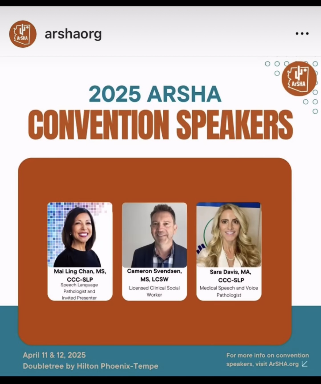 What a WONDERFUL experience this past weekend at the annual @arshaorg conference. I am so GRATEFUL for the opportunity that I was provided to present a 90 minute talk with a patient (Cameron) and his wife (@mailingchan ), who is also a speech pathologist.